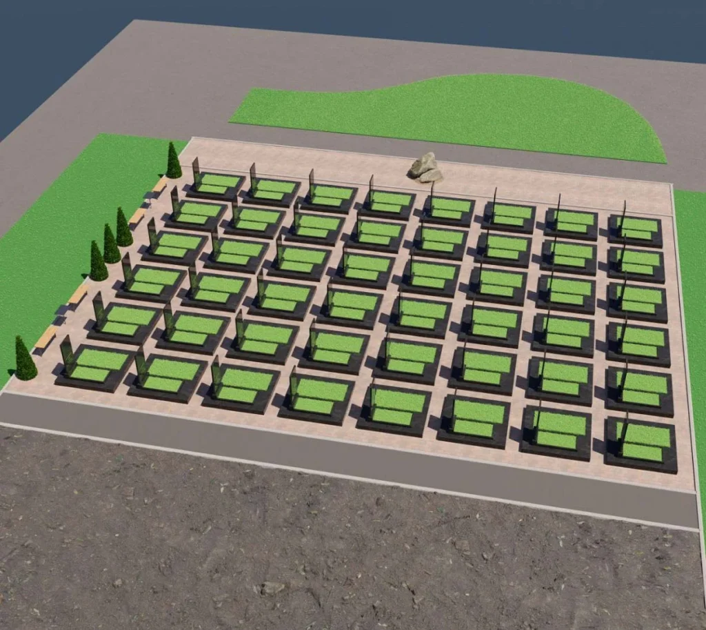 За эти деньги на участке площадью 10 тысяч м² заасфальтируют тротуары и дорожки, поставят лавочки и модульный туалет, оборудуют освещение, видеонаблюдение и аудиопередатчики, уложат брусчатку, произведут озеленение, установят гранитные надгробия и трехметровую стелу мемориала. Все работы завершат до 15 ноября 2023 года. Судя по рабочей документации (ГП. pdf), проект аллеи предусматривает 238 могил и колумбарий на 156 ячеек. Все памятники на героической аллее будут в едином стиле, их установят только после согласия родственников погибших.