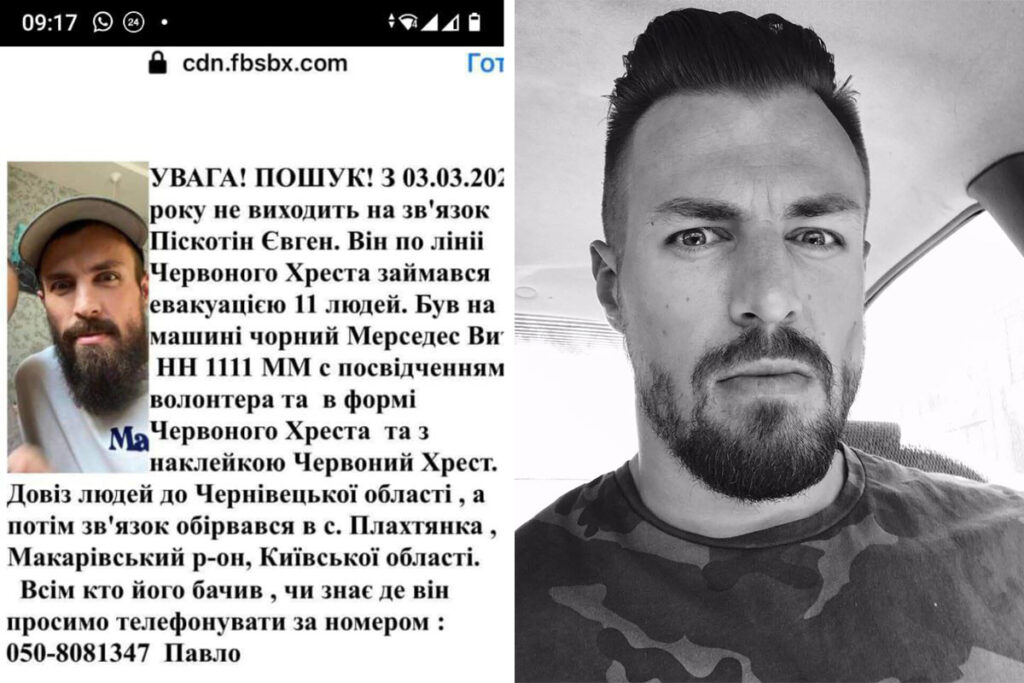 Также на территории села обнаружили тело 35-летнего волонтёра Красного Креста Евгения Пискотина. Рядом стоял его сгоревший микроавтобус. До этого он не выходил на связь с 3 марта.