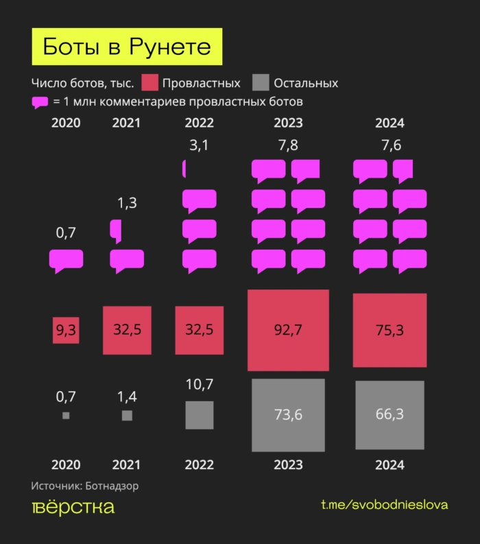 В 2024 году провластные боты в ВК оставили самое большое число комментариев за последние четыре года