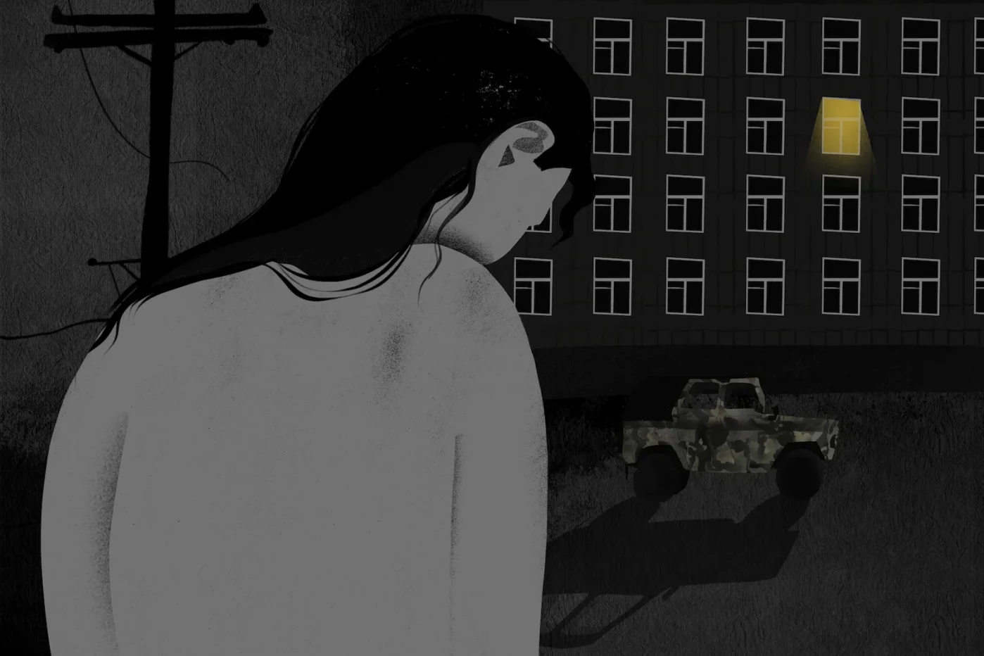 Alina and Rita did not immediately tell their relatives about the rape. Rita’s sister noticed “minor changes” in the girl’s behavior but attributed them to PMS or “just a bad mood.” Alina’s mother, a week later, noticed bruises on her daughter’s legs. “She had bruised bones on her hands, and there were still finger marks and bruises on her leg,” Maria recalls. That’s when the schoolgirl admitted that a military man had raped her, and her mother went to the police to file a report.