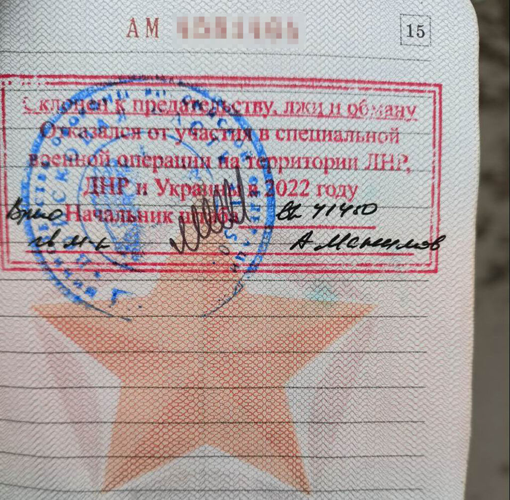 До этого мужчина семь месяцев провёл в командировке в Сирии и рассчитывал на реабилитационный отпуск. Но по возвращении домой его решили отправить в Украину. Контрактник отказался, и его уволили. А начальник отдела кадров поставил в его учётно-послужную карту печать со словами: «Склонен к предательству, лжи и обману. Отказался от участия в специальной военной операции на территории ЛНР, ДНР и Украины».