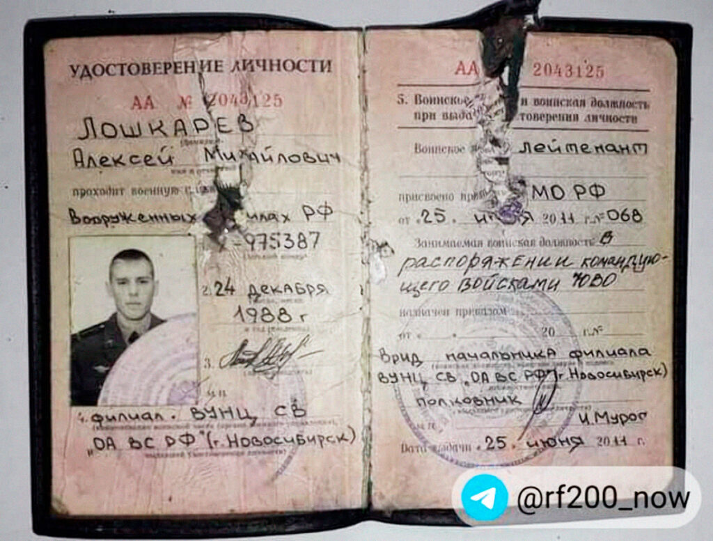 Военное удостоверение Лошкарева. Фото: Телеграм-канал «Ищи своих»