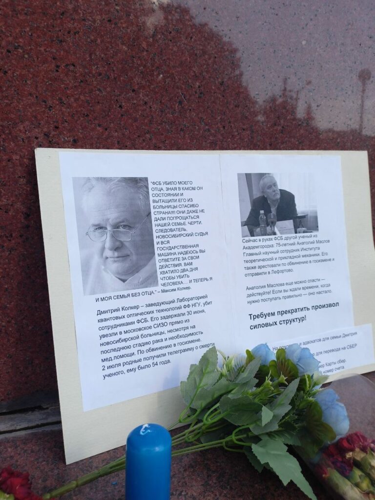 «Потому что все парализованы. Никто не высказался. НГУ не высказался. Пармон (председатель СО РАН академик Валентин Пармон. — Прим. ред.) не высказался, — говорит он. — Но чувствовалось, что людям нужно что-то такое. Стихийный мемориал кажется чем-то очень естественным, когда происходит трагедия, а именно она случилась с Колкером и Масловым. Я подумал, что если мемориала ещё нет, то его нужно сделать».