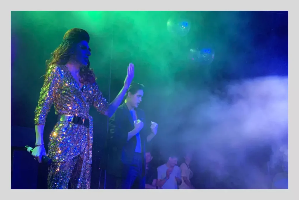 Его владельцы Артём и Денис в 2021‑м снимались в новосибирском выпуске «Квирографии» — проекта Карена Шаиняна про жизнь ЛГБТиК-сообщества в российских регионах. Команду «Квирографии» пустили и в гримёрку к артистам, и за сцену «Элтон-бара», и поплясать в зале. Денис и Артём охотно рассказывали Шаиняну, как идёт бизнес.