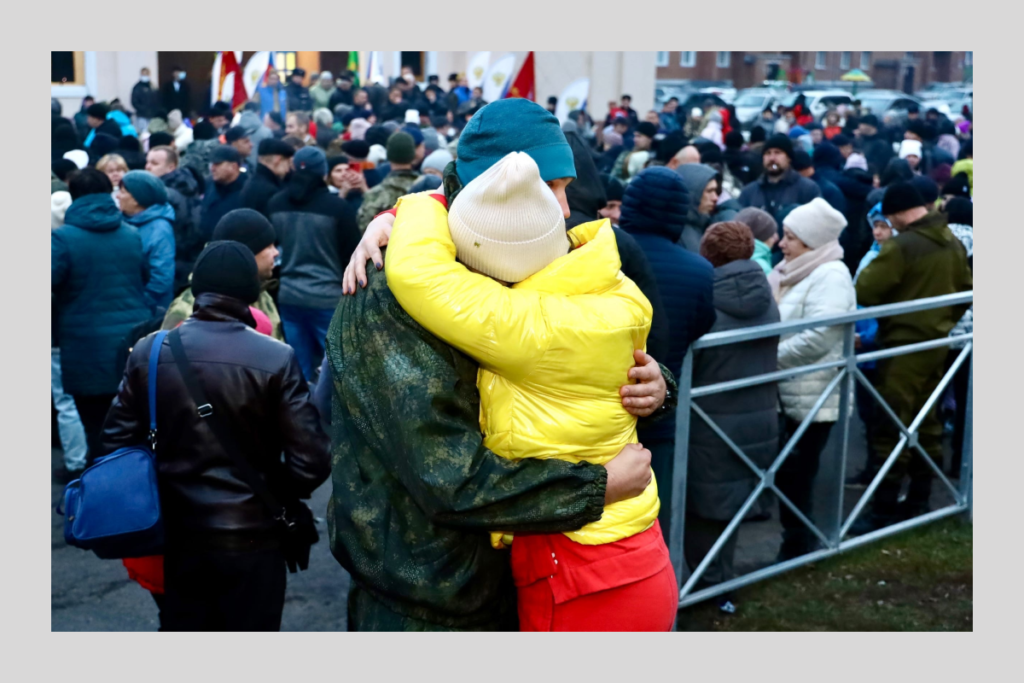 Родственники провожают мобилизованных в Новосибирской области. 27 октября 2022 года. Фото со страницы главы Убинского района «ВКонтакте»