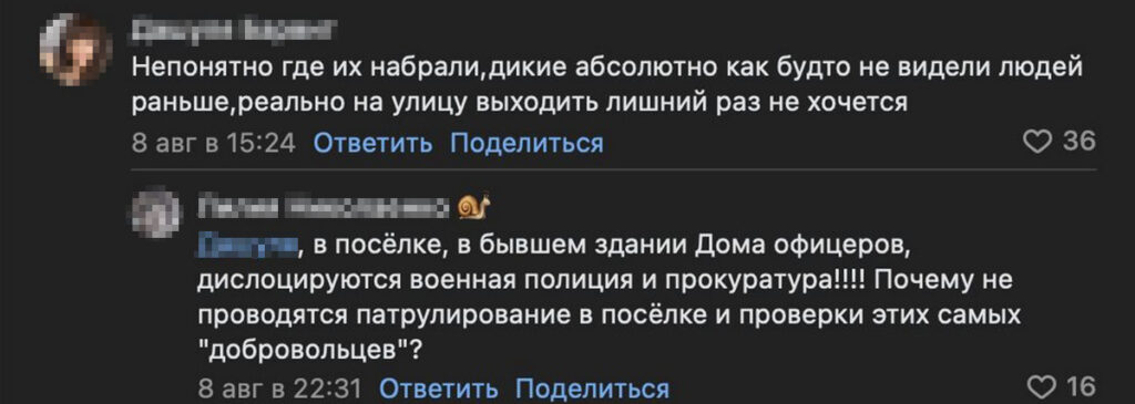 Также пользователи писали, что новые контрактники гуляют по улицам пьяными, пристают к девушкам, провоцируют драки. Из-за этого многие боятся выходить на улицу по вечерам.
