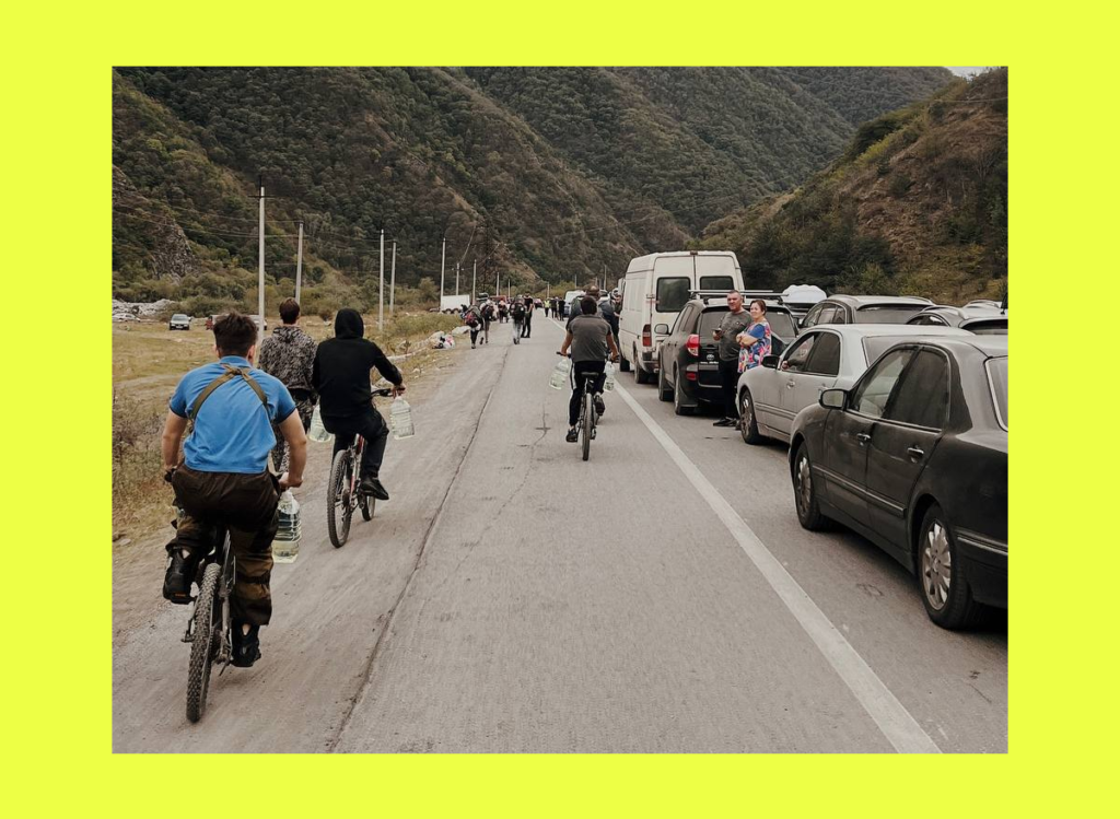 Те, кто уезжал через Верхний Ларс, писали о многочасовых пробках по дороге к КПП. Руслан решил, что ехать на машине бессмысленно — автомобильная очередь движется медленнее, чем пешая, и стоять придётся ещё дольше. Поэтому он взял с собой велосипед — на тот момент пересекать границу с Грузией пешком было нельзя. Зато допускались велосипеды, электрические самокаты и даже роликовые коньки.