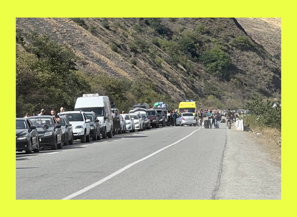 Очереди на пропускных пунктах России с соседними странами растянулись на десятки километров (27 сентября длина очереди перед пунктом Верхний Ларс составляла от 20 до 30 км). Люди стоят в них сутками. Те, у кого нет автомобилей, вынуждены спать на земле или на полу в здании КПП. У многих заканчивается вода и бензин. Параллельно российские СМИ сообщают, что на границах с Грузией и Финляндией открыли мобилизационные пункты, и от этого у части людей появляются панические настроения.