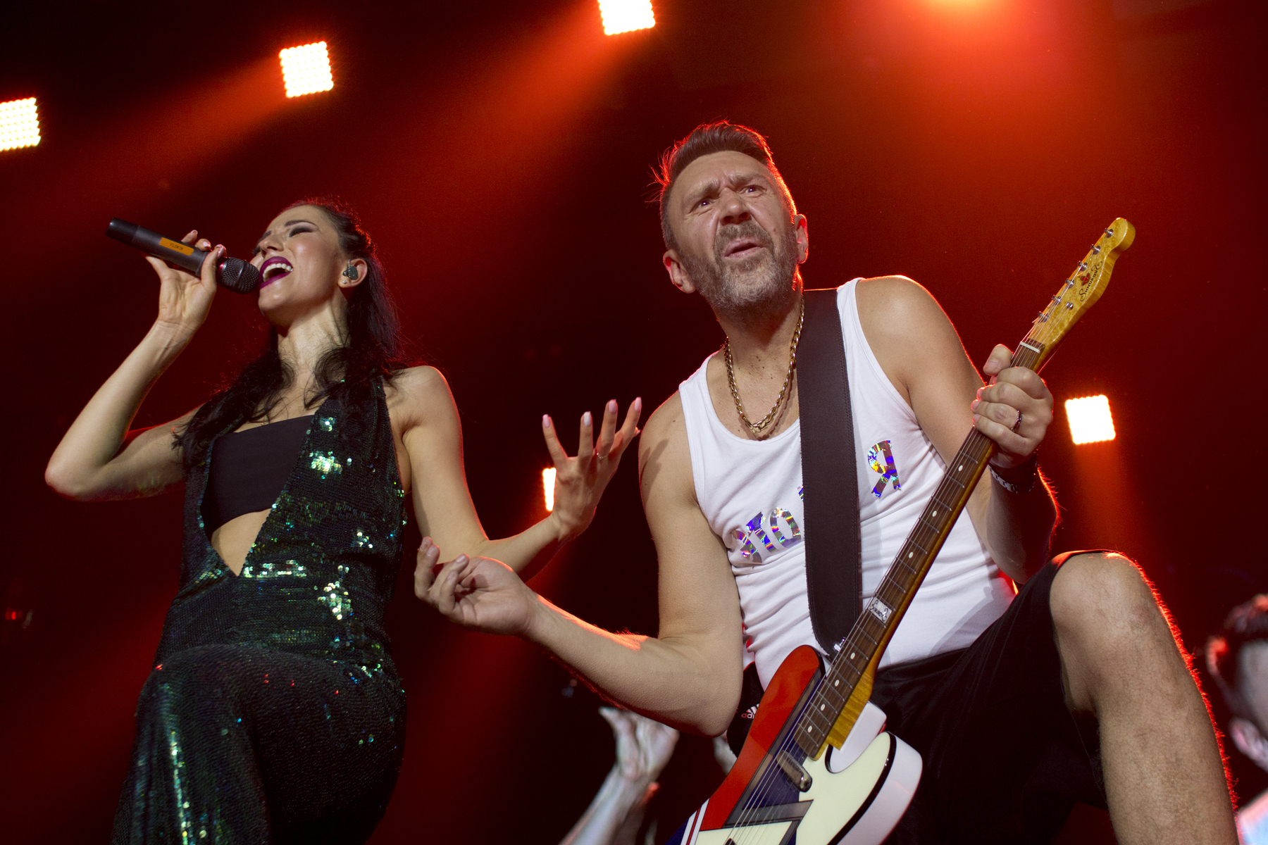 Фото: Выступление группы «Ленинград» в 2017 году. Сергей Шнуров и Флорида Чантурия. Википедия