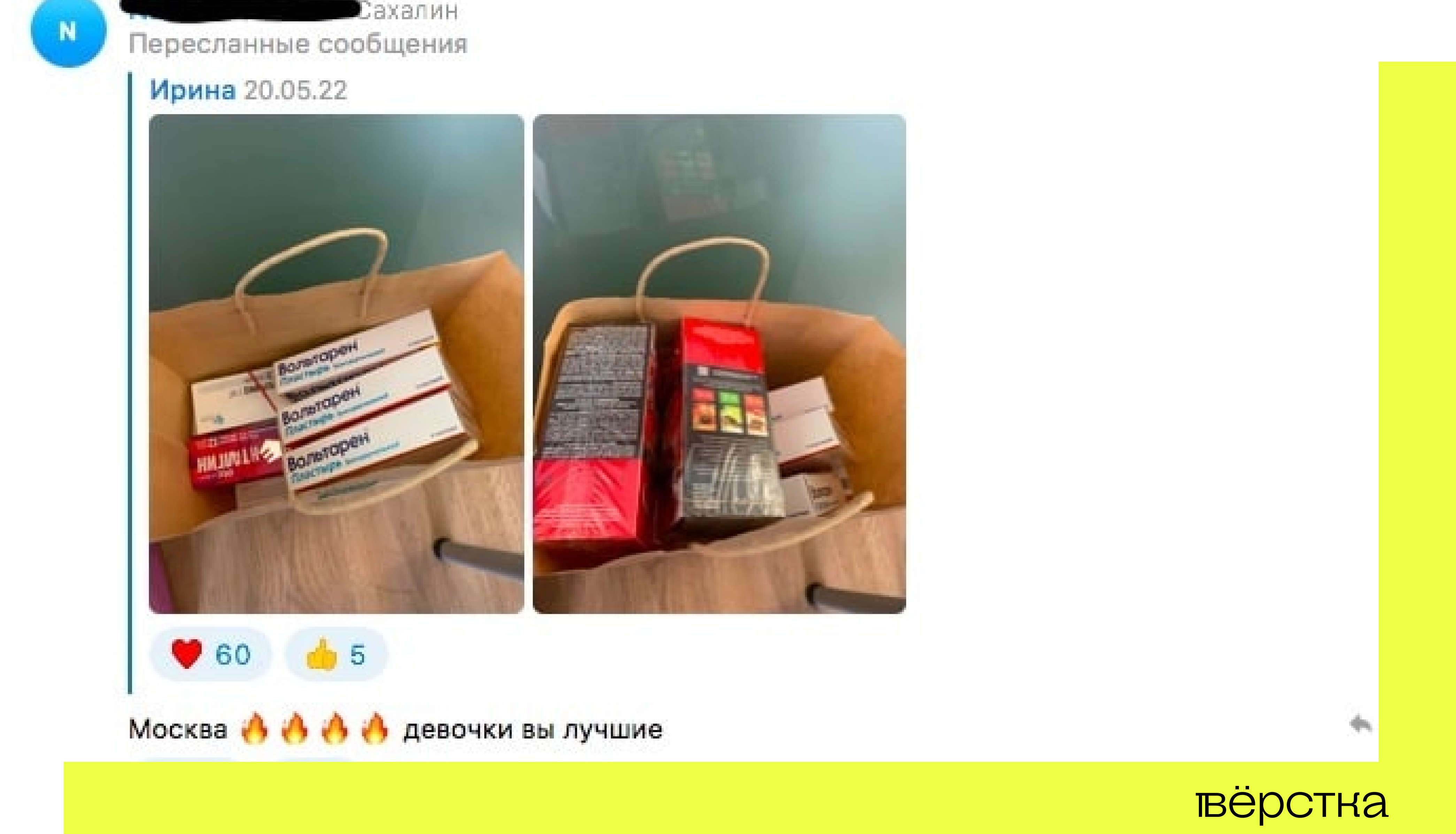 «Пару дней назад подвозила военного, стоял голосовал. Подвозила к колонне, уходили за ленточку (на территорию боевых действий — прим. «Вёрстки»). Я не удержалась и спросила, доходит ли до них наша помощь, и знаете, что я услышала? Мы, говорит, за счёт неё и держимся. Когда выходил с машины, сказал: «Вы молитесь за нас», — пишет Инесса, участница одной из таких групп.
