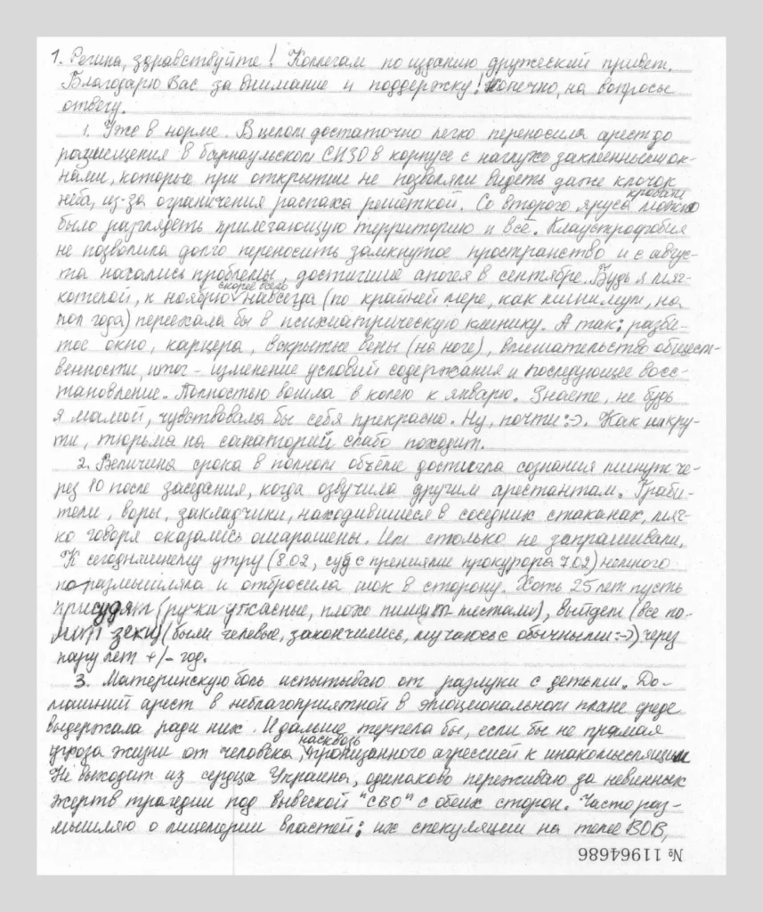 Перед оглашением вердикта суда «Вёрстка» попросила Марию Пономаренко рассказать о своём состоянии, ожиданиях от приговора и видении будущего. Публикуем её ответ, присланный из СИЗО.