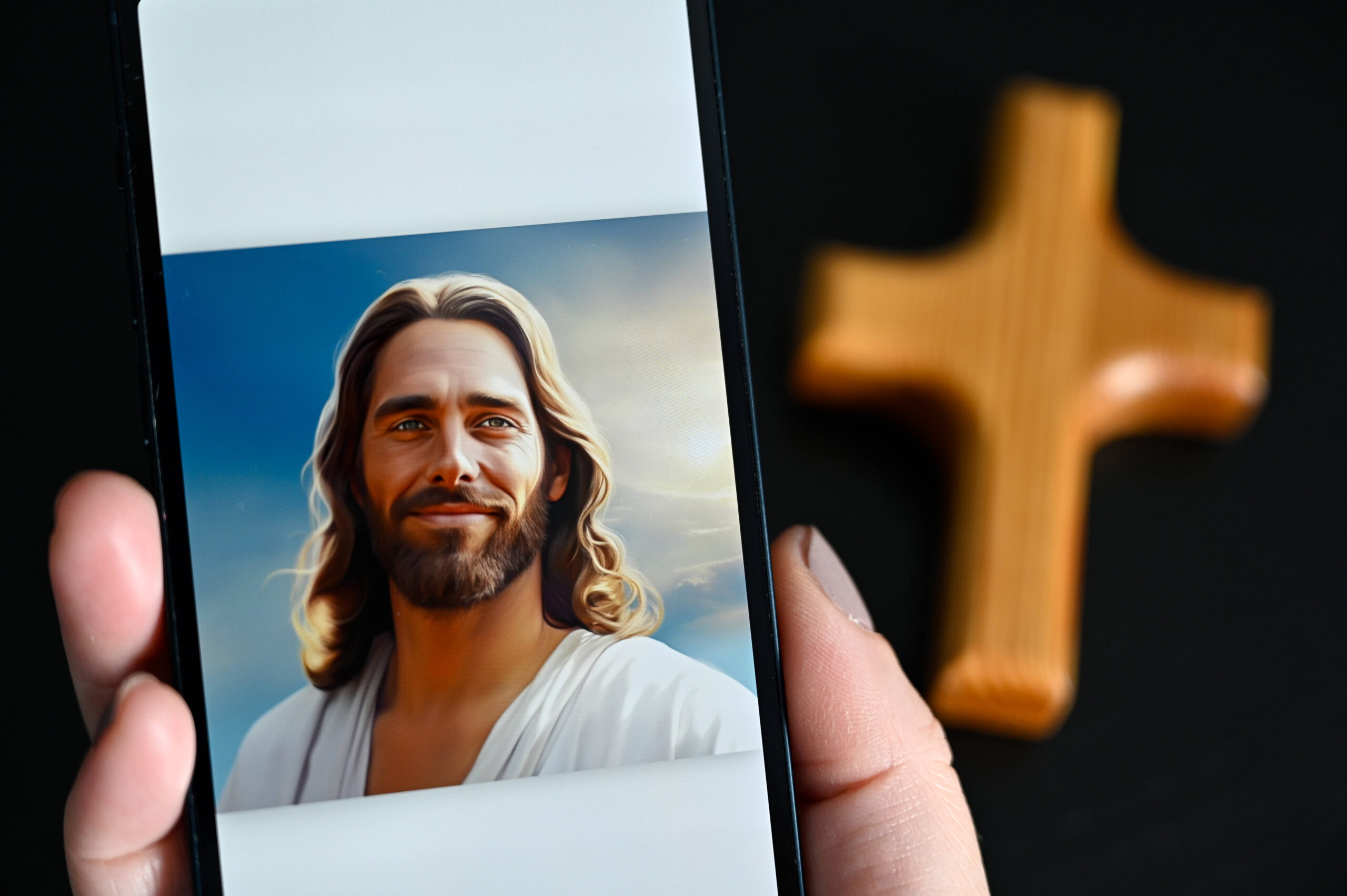 Фото: Приложение Text with Jesus от технологической компании Catloaf Software на смартфоне. Иллюстративное изображение. IMAGO/epd via Reuters Connect