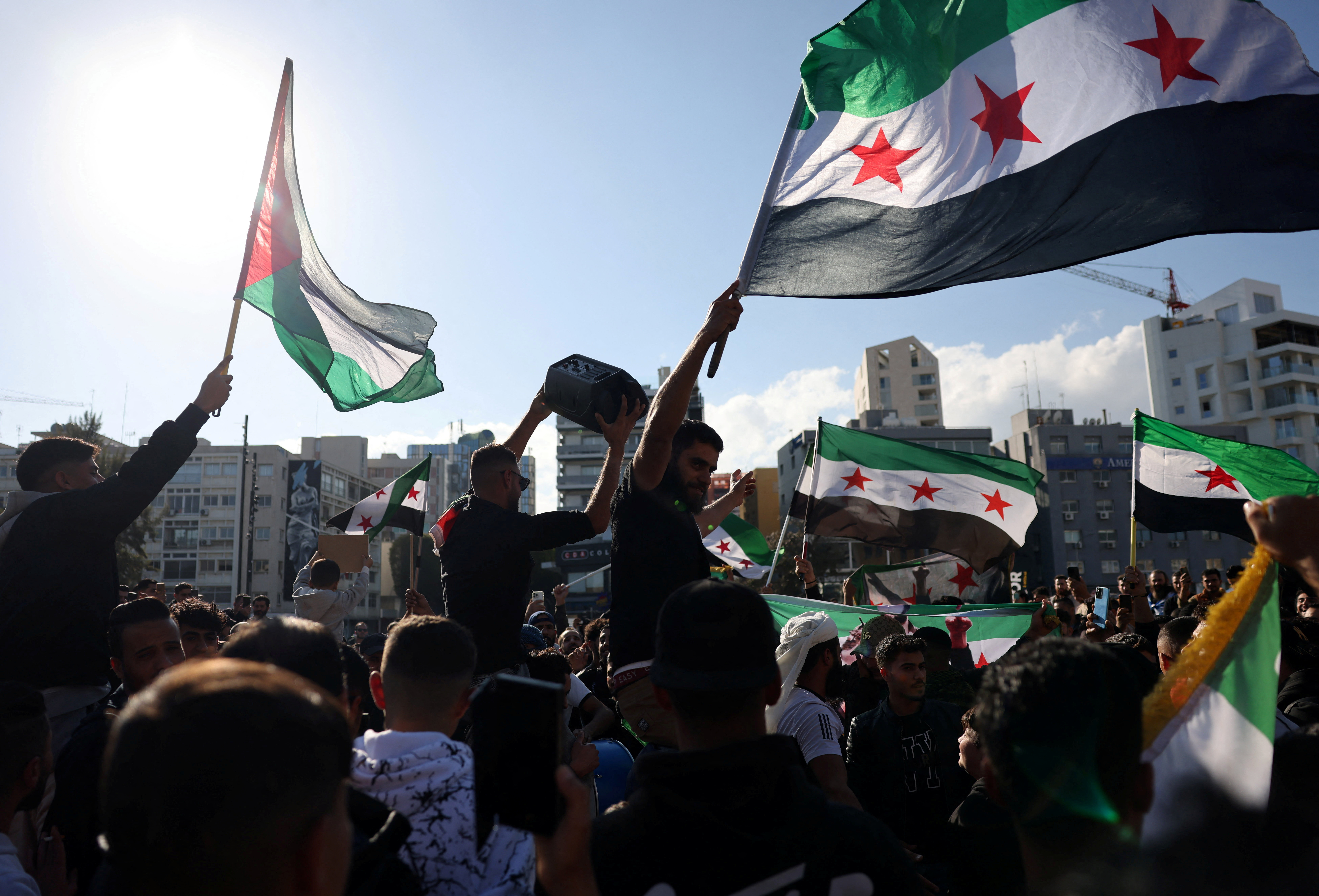 Члены сирийской общины на Кипре празднуют свержение президента Башара Асада, 8 декабря 2024 года. REUTERS/Yiannis Kourtoglou