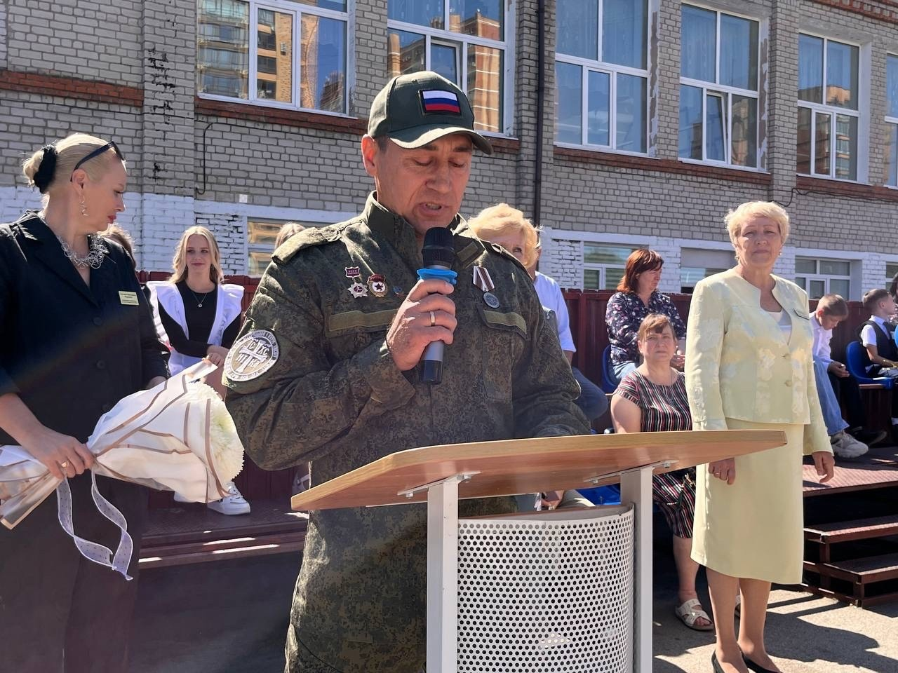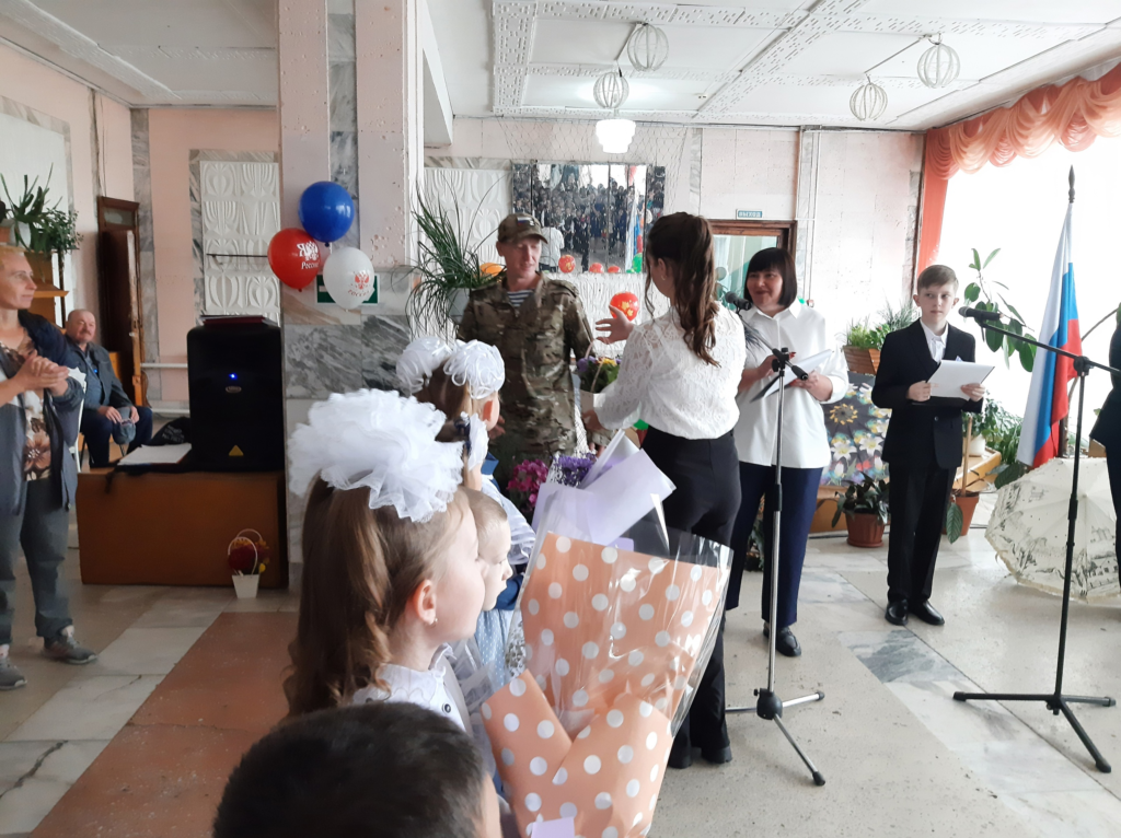 В Лазовской средней школе на Камчатке перед детьми выступили сразу двое военных: один — по видеосвязи, другой, находящийся в отпуске выпускник школы, — лично. Также на линейке сотруднице школы вручили медаль «Жене участника СВО».