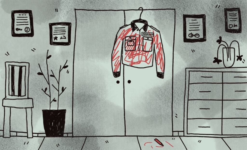 Первый раз случился в день акции ФАС «Мариуполь 5 000» (во время акции активистки устанавливали кресты в память о жителях Мариуполя, погибших во время российской оккупации. — Прим. ред.). До того момента мы с семьёй старались не обсуждать политику, чтобы не ссориться. Дело в том, что папа — путинист до мозга костей: он работал в милиции, а потом в судебной системе. Мама политикой не интересуется, но изредка смотрит госканалы.