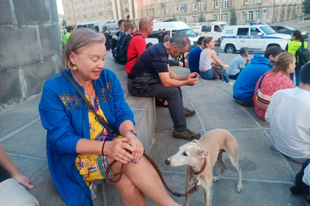В центре площади образуется стихийный молчаливый протест. Десятки людей мрачно садятся на ступеньки у памятника Ленину. Сергей, сотрудник Школы Астрономии, говорит, что приехал сюда на велосипеде.